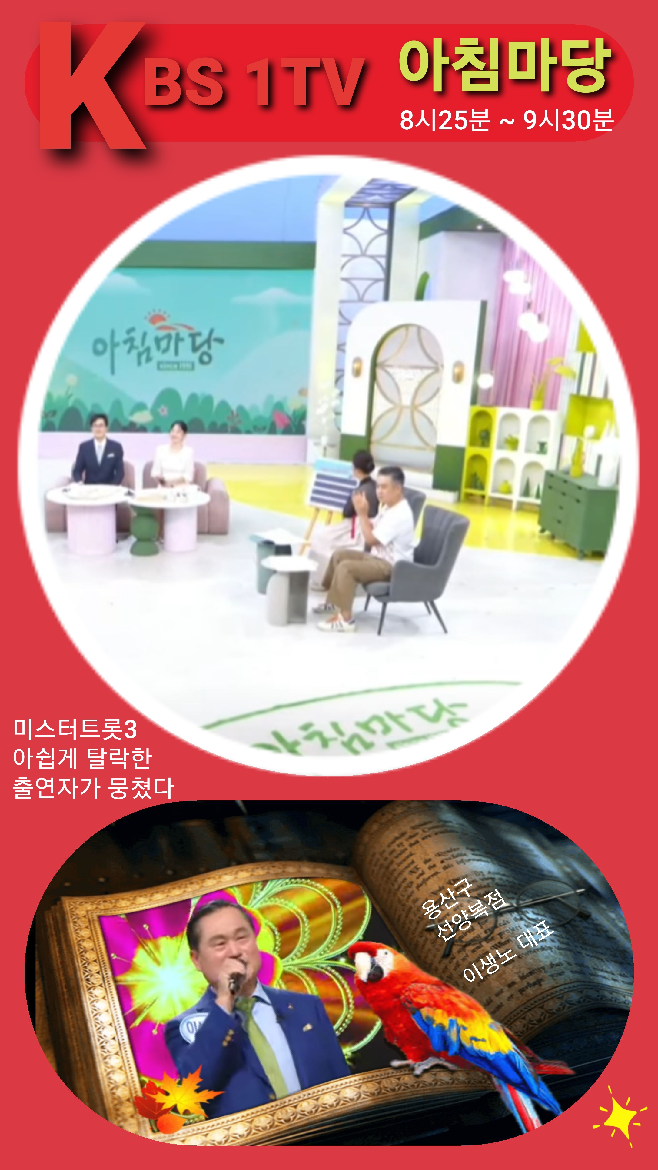[스크랩] KBS 아침마당 이생노 출연 작성자난 흔들리며 피는 꽃(서울)|작성시간25.03.21|조회수302 목록 댓글 1 글자크기 작게가 글자크기 크게가 미스터트롯3 화제의 출연자 이생노박사님 코넬대학교 관광경영학과 졸KBS 아침마당 2025년 3월 17일 월요일 아침 생방송에 출연 다음검색 스크랩 원문 : 서울에서 전세금으로마이홈만들기 현재 게시글 추가 기능 열기 북마크 신고 센터로 신고 댓글 댓글 1 댓글쓰기 답글쓰기 댓글 리스트 작성자쟈스민 | 작성시간 25.03.25 잘보고갑니다 댓글 전체보기