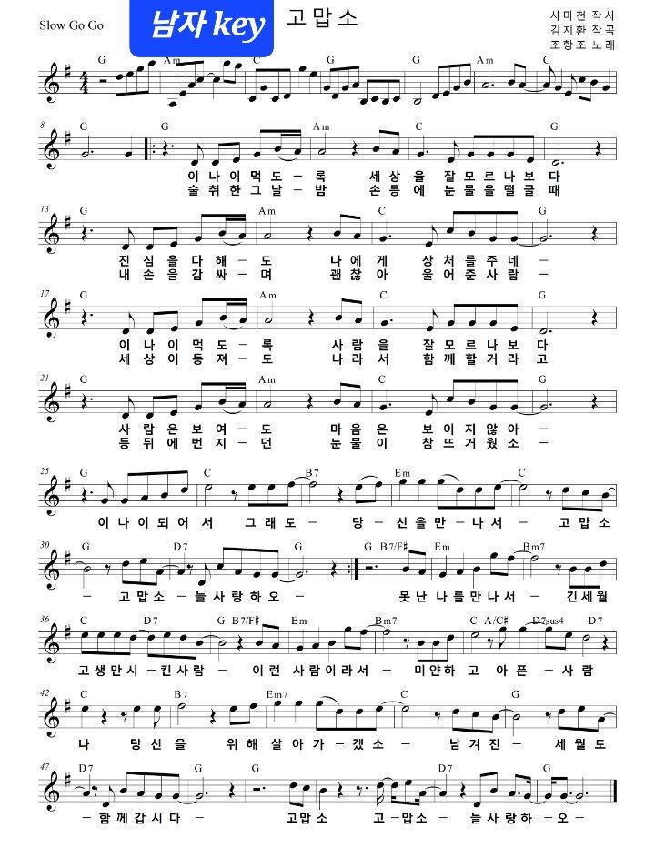 김호중 -고맙소 (악보첨부) (원곡:조항조) 작성자유니야|작성시간23.01.26|조회수1,979 목록 댓글 1 글자크기 작게가 글자크기 크게가 다음검색 현재 게시글 추가 기능 열기 북마크 신고 센터로 신고 댓글 댓글 1 댓글쓰기 답글쓰기 댓글 리스트 작성자한결같이요 | 작성시간 23.01.26 고맙습니다 댓글 전체보기