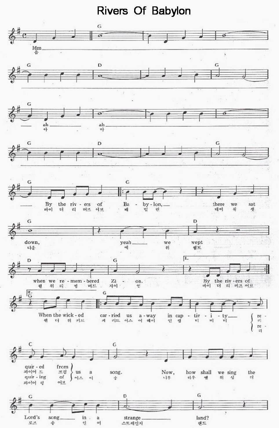Boney M - Rivers of Babylon (바벨론 강가에서) (악보첨부) 작성자유니야|작성시간22.12.09|조회수2,533 목록 댓글 0 글자크기 작게가 글자크기 크게가 다음검색 현재 게시글 추가 기능 열기 북마크 신고 센터로 신고 댓글 댓글 0 댓글쓰기 답글쓰기 댓글 리스트