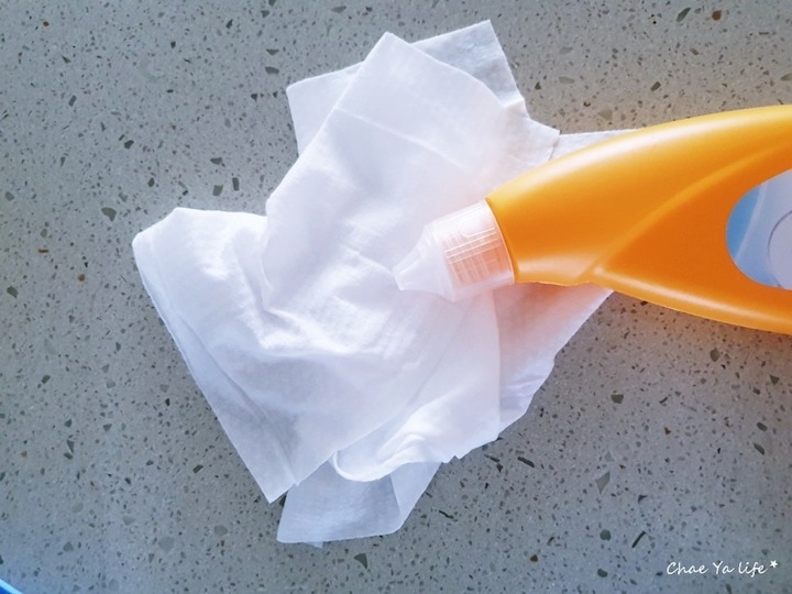 곰팡이 제거에 좋은 욕실 세정제를 살짝만 발라주었어요.