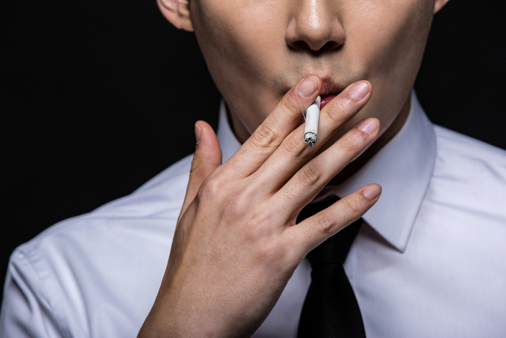 니코틴과 타르 성분이 치아의 표면에 붙어 착색을 유발하는 흡연.