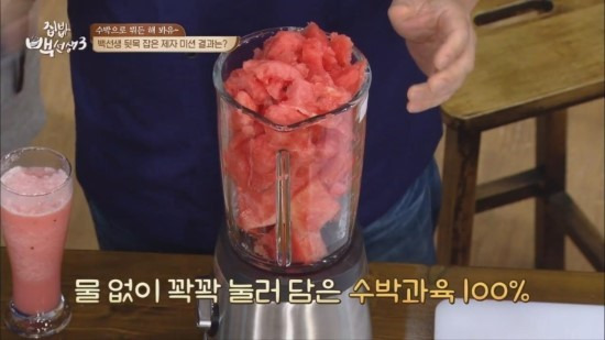 수박 안 쪼개고 수박주스 만드는 방법 통째로 주스로 만든다 본격적인 여름, 태양은 점점 뜨거워지고... 한낯엔 가만히 있어도 땀이 뻘뻘.. ![]() 목은 바짝바짝 마릅니다. 시원한 과일주스가 딱 어울리는 계절!! 여름엔 뭐니 뭐니해도 과일주스~~ 여러분은 어떤 과일로 만든 주스를 좋아하시나요? 음 에디터는 수박 킬러예요. 썰어먹는 수박, 큐브로 잘라낸 수박, 주스로 갈아낸 수박, 다 좋아요 ♥ 하루 한 번은 꼭 사먹는 수박주스!! 블렌더만 있다면 집에서도 얼마든지 만듭니다. 수박을 잘게 조각내서 그런데 홈메이드 수박주스를 만드는 좀 색다른 방법이 있었습니다. 이 사람이 소개한 방법인데요! 앨튼브라운(Alton Brown). 다소 튀는 레시피를 종종 소개하죠. 그의 수박주스 레시피 역시 그렇습니다. 수박을 반으로 쪼갠 뒤, 하나씩 조각내지 않고도 수박 한 통을 단번에 주스로 탈바꿈하는 방법이죠. 앨튼 브라운의 유튜브 채널에 나온 1분짜리 동영상을 보면, 딱 이 3단계만 따라하면 되어요. - 3인치짜리 비스킷 커터로 수박 껍질의 정수리를 꽉 눌러 자국을 낸다. - 칼로 자국을 따라서 껍질을 썰어낸다. - 동그란 구멍 사이로 핸드블렌더를 넣고 꼼꼼하게 휘저으며 수박 과육을 갈아낸다. 어머나.. 수박이 통째로 주스로 변했네요! 출처 : 유튜브 캡처 블렌더로 원을 그리면서 정성껏 갈아내는 게 필수!! 무더운 날들, 수박주스 드시고 시원하게 보내세요 ♬ [리얼푸드=박준규 에디터] |
