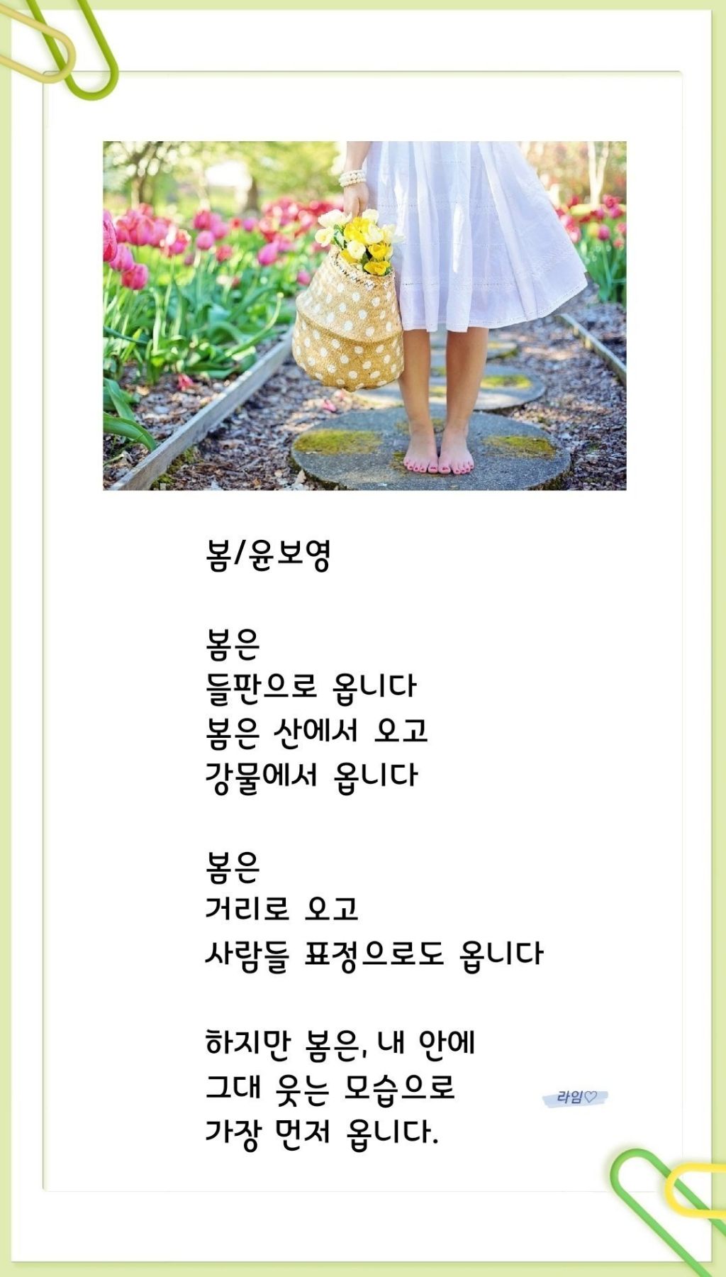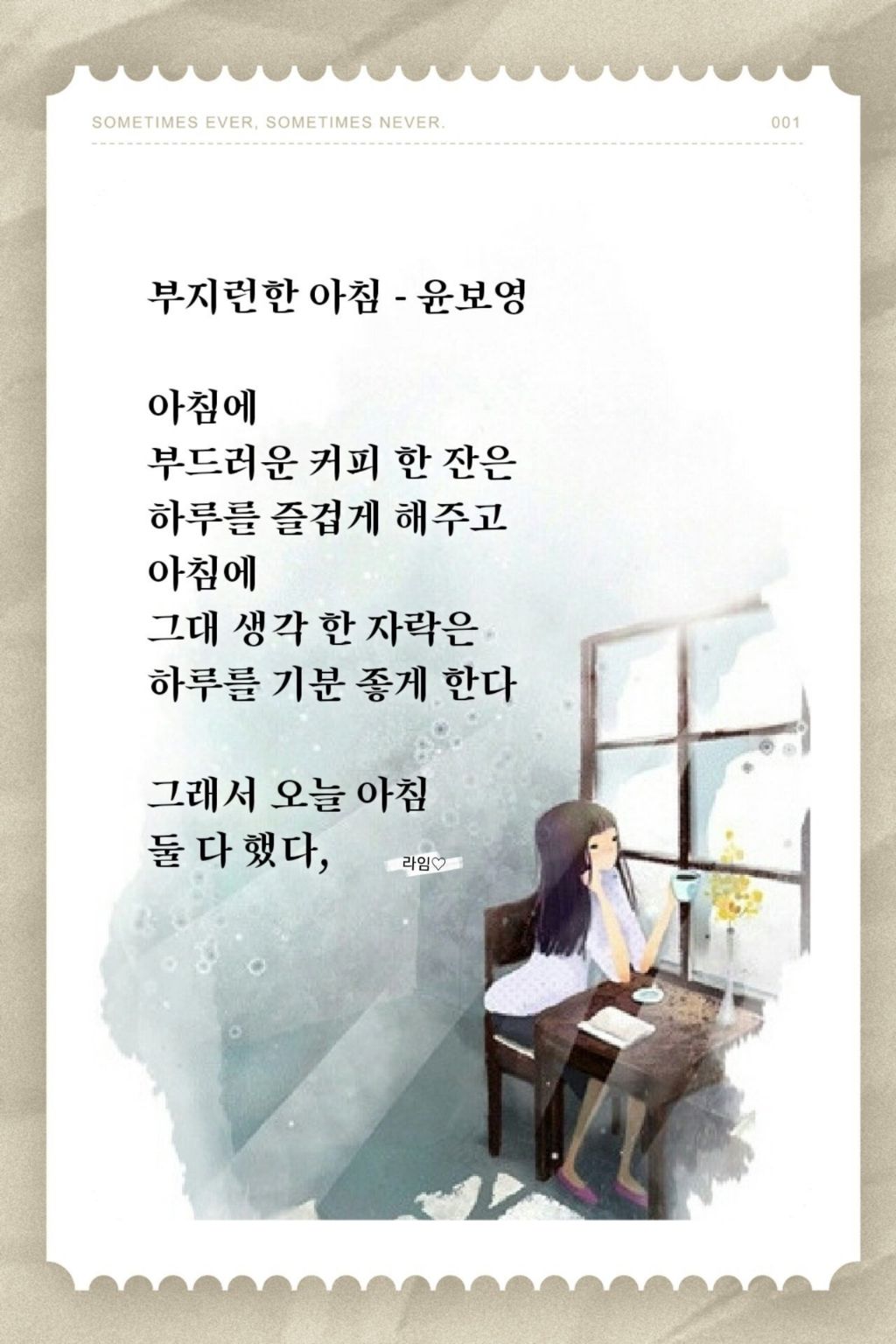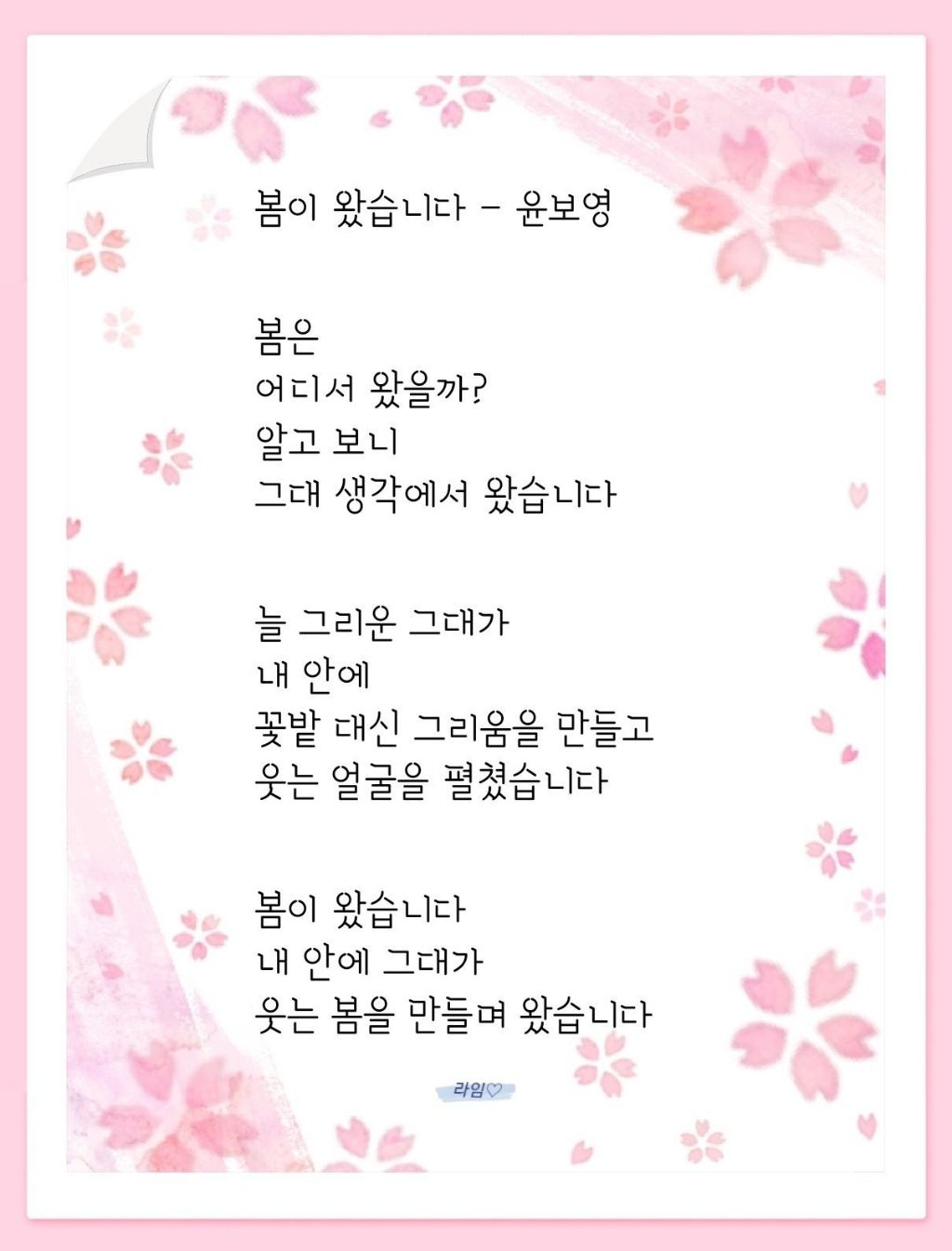 커피시인 윤보영의 시화로 읽는 시 작성자윤보영|작성시간26.04.10|조회수199 목록 댓글 5 글자크기 작게가 글자크기 크게가 운전 중졸음이 온다졸음 쉼터에서잠시 쉬었다 가야겠다주차 자리가 없다졸음은먼저떠났다.- 윤보영 아하시- 다음검색 현재 게시글 추가 기능 열기 북마크 공유하기 신고 센터로 신고 댓글 댓글 5 댓글쓰기 답글쓰기 댓글 리스트 작성자윤보영 작성자 본인 여부 작성자 | 작성시간 26.04.10 감사합니다. 사랑합니다 작성자한결같이요 | 작성시간 26.04.10 고맙습니다 작성자불장디기 | 작성시간 26.04.13 감사하고고맙습니다! 작성자lee 대로 | 작성시간 26.04.16 감상 잘 했 습니다 글 고맙고 감사 함니다. 작성자아침 향기 | 작성시간 26.04.19 new 윤보영님 남자예요 여자예요~ 글이 하두 예뻐서요~ ㅎㅎ 댓글 전체보기