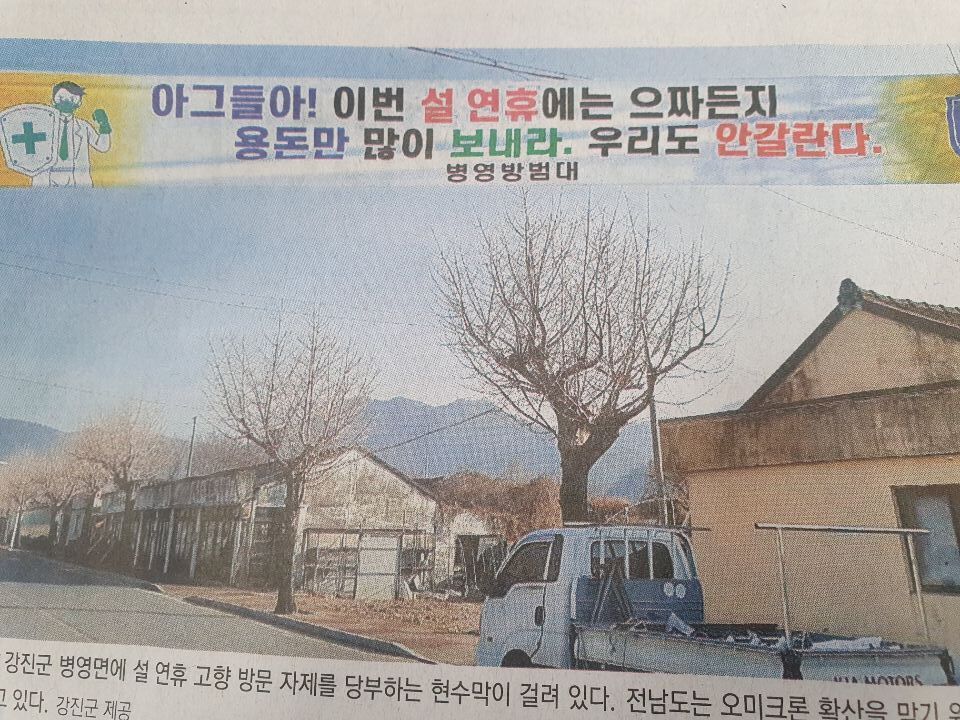 웃픈 현실입니다ㅠㅠ 작성자늘감사해|작성시간22.01.27|조회수930 목록 댓글 2 글자크기 작게가 글자크기 크게가 그래도 마음만은 행복한 설연휴 되세요. 다음검색 현재 게시글 추가 기능 열기 북마크 공유하기 신고 센터로 신고 댓글 댓글 2 댓글쓰기 답글쓰기 댓글 리스트 작성자이든 | 작성시간 22.01.27 ㅎㅎㅎ노놈의 돈~~ 작성자석포 | 작성시간 22.02.02 시골집 동네에다 현수막을 걸어 놓으면 누가읽지???현수막 값만 낭비.... 댓글 전체보기