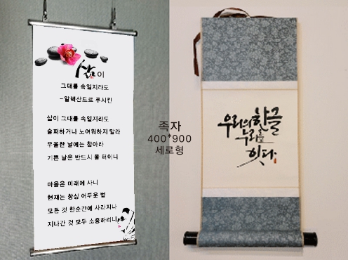 족자 / 프린팅 3만 5천원 / 한지표구 12만원 (사진예시)