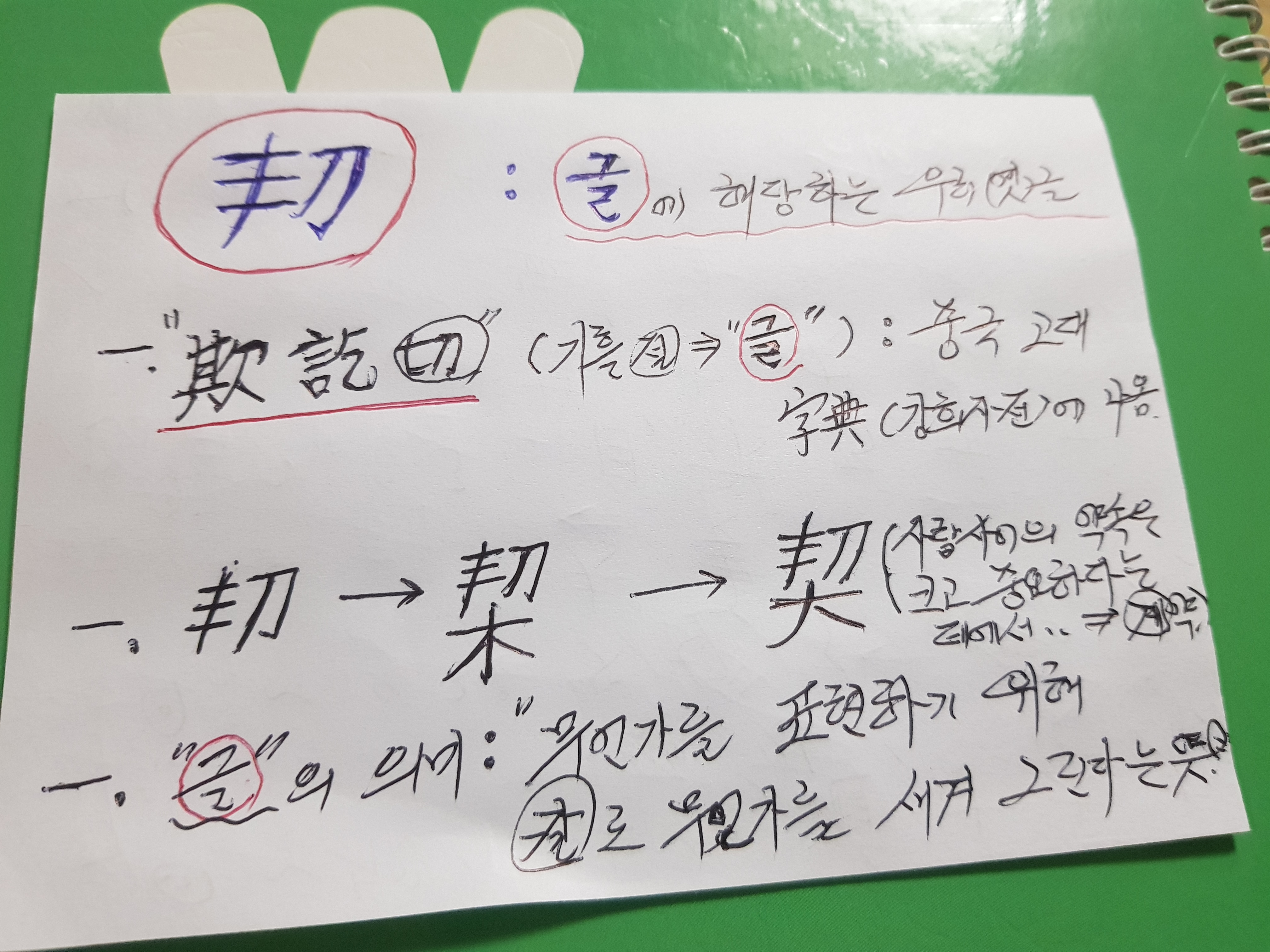 제 잠시 접어두시고, "글(契)"의 정확한 의미는 우