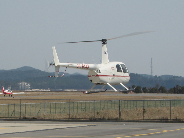 호버링 연습으로 아슬 아슬한 초 저고도 에어쇼를 보여 준 한서대학교 회전익 항공기