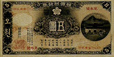<1901년 발행된 중앙은행의 오원권 지폐>