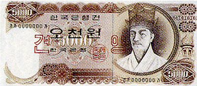 당시 한국의 기술로서는 지폐인쇄가 어려워 영국의 지폐 제조회사인 토마스 델라루에 제작을 의뢰하여 제작되었기 때문이다. 지폐에 사용된 초상들은 갸름한 얼굴 형태와 오똑한 코 큰 눈이 서구적으로 표현되어 어색한 느낌이 든다.