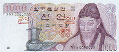<한국은행의 천원권 지폐>