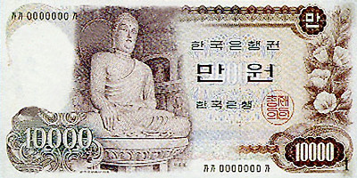 <앞면은 석궐암, 뒷면은 불국사가 도안으로 사용된 만원권 지폐.>