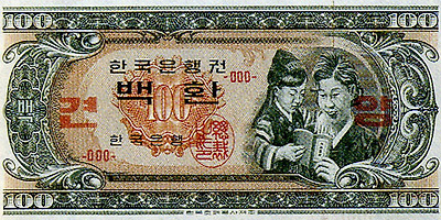 <1962년에 발행된 백원권 지폐>