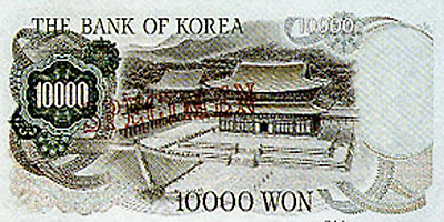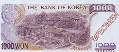 한국의 급격한 경제 성장과 함께 기술이 발달하고 고급화 되어 1983년 이후에는 아래와 같은 지폐가 발행되어 현재의 모습과 같이 유사하게 된다.