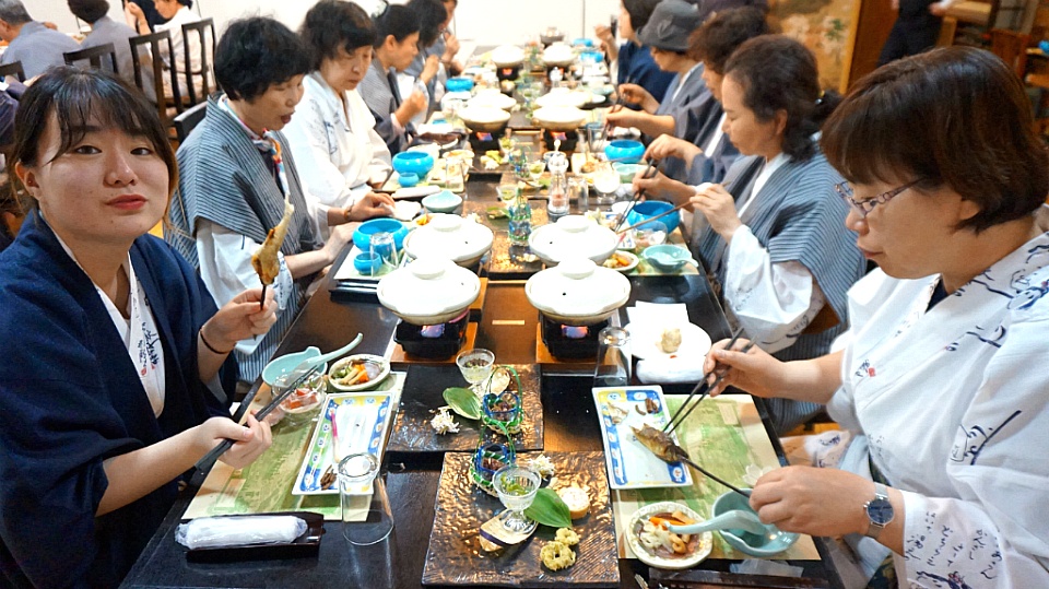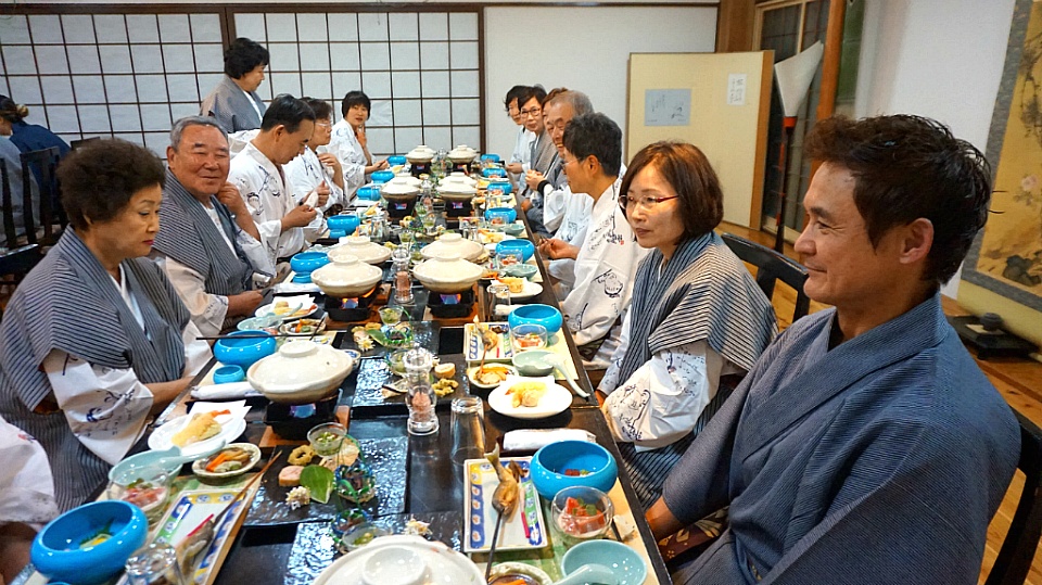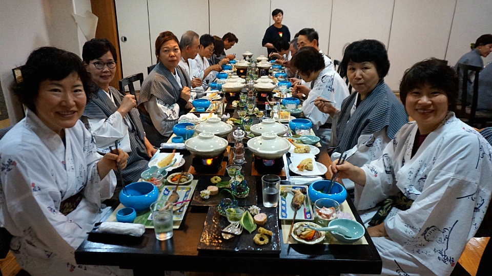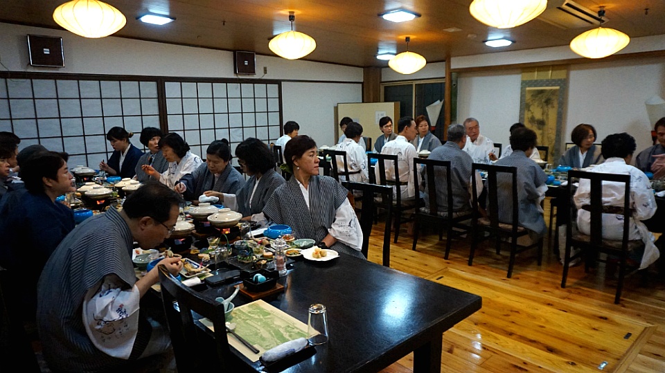 유카타로 갈아입고 1층에 마련된 연회장으로 내려갑니다.