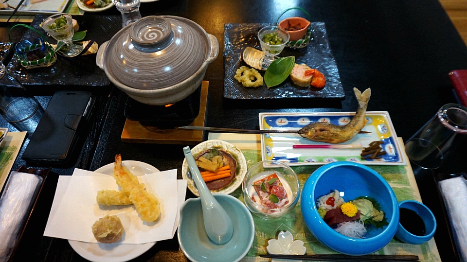 여기는 정통 료칸이 아니다보니 좀 더 편리하게 식탁에 차려놓았네요.
