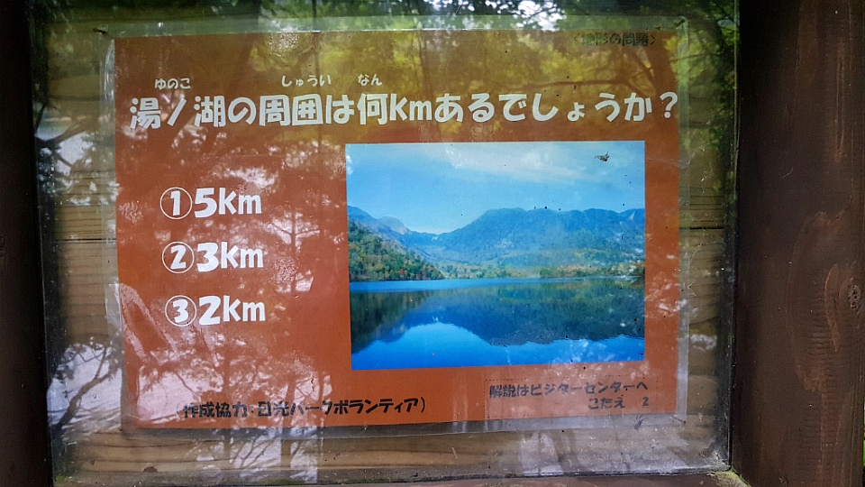 산책로 중간 중간 이런 퀴즈를 내놓아 유노코 호수에 대한 궁금증을 불러일으킵니다.