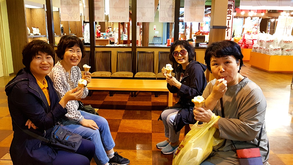막 구어 나온 센베이는 마치 누룽지처럼 고소하고 맛있었습니다. 그렇게 아무 맛도 가미하지않은 것을 팔면 좋으련만...