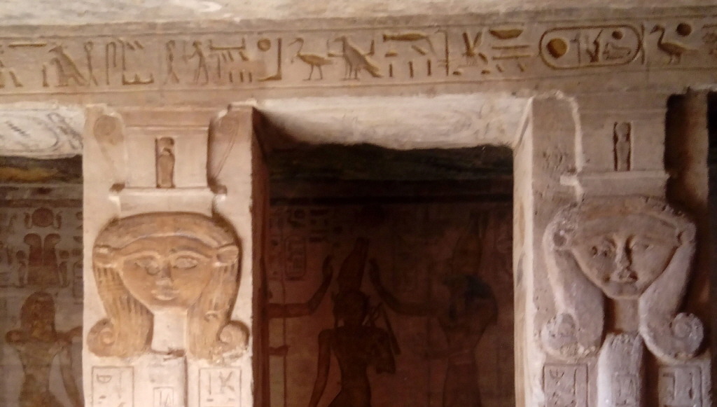 신전 내부에 있는 하토르 여신의 입상이 6개가 세워진 기둥의 방이 있으며 벽면에는 채색된 왕비의 모습이 새겨진 벽화가 있다.