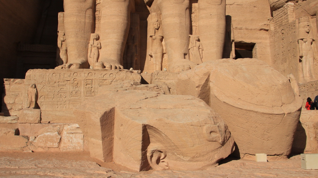 안타깝게도 보는 방향으로 왼쪽 두 번째의 좌상은 세월을 견디지 못하고 부서졌지만 떨어진 몸체가 바로 아래에 보존되어 있는 것도 아부심벨의 묘미다.