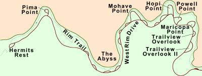 Hermits Rest, Mohave Point, Hopi Point, 에만 정차한다.