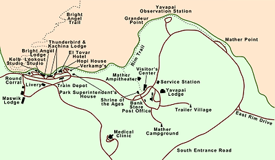 (1) Hermits Rest Route (2) Village Route (3) Kaibab Trail Route 이다.