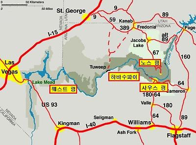 그랜드 캐년은 세개의 각기 다른 곳으로 되어있다. 사우스 림, 노스 림, 그리고 웨스트 림이 그것이다.