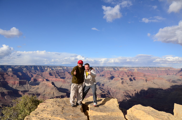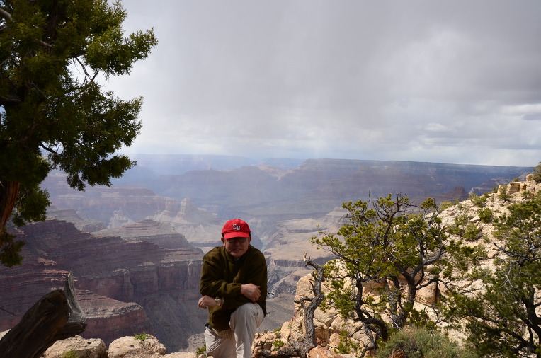 그랜드 캐년 협곡 앞에서서 나, 세울림(Kenny Chi)은 여행 친구들에게 인사를 한다.