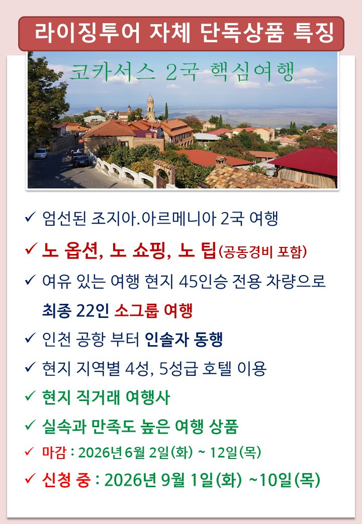 ◇ 여행 상품명 : 코카서스 [조지아, 아르메니아 2국 여행] 8박 10일