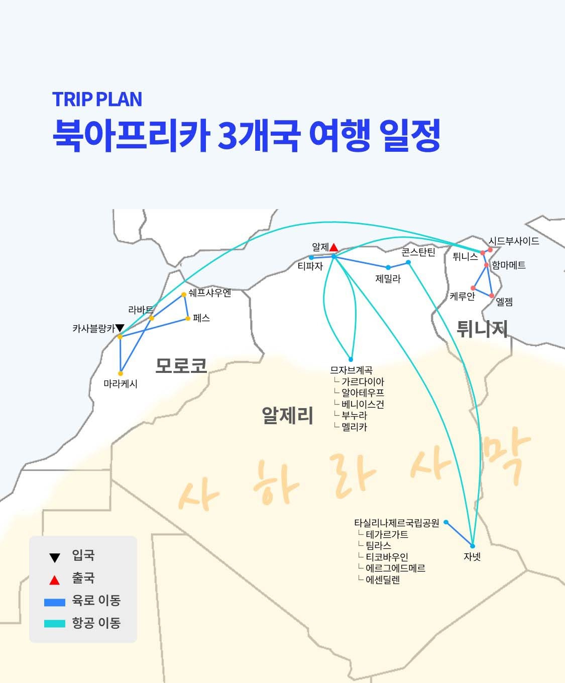 지중해의 낭만과 사하라 사막의 거친 매력이 공존하는 특별한 여행지 입니다.