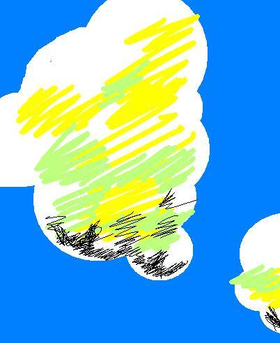 구름 위에는 노랑색, 연두색 섞여있어서 예뻤는데