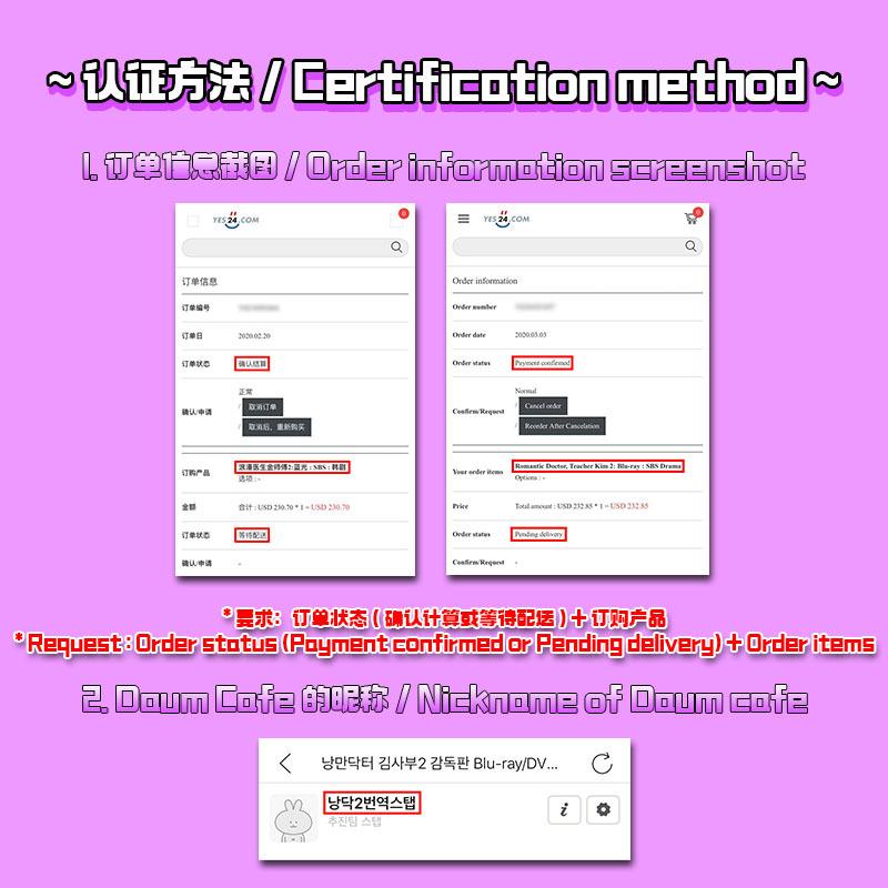 Re:[中文/ENG] 认证方法 / Certification method 작성자낭닥2번역스탭|작성시간20.03.06|조회수180 목록 댓글 0 글자크기 작게가 글자크기 크게가 다음검색 현재 게시글 추가 기능 열기 북마크 신고 센터로 신고 댓글 댓글 0 댓글쓰기 답글쓰기 댓글 리스트