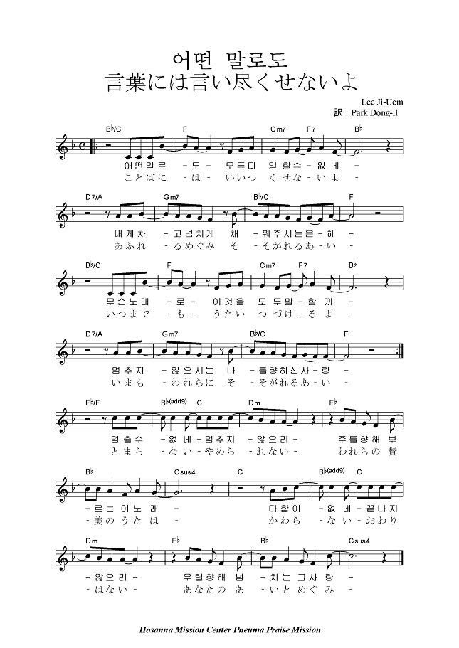 [ㅇ]어떤 말 로도 / 言葉には言い 尽くせないよ - F 작성자석성주|작성시간10.12.24|조회수395 목록 댓글 0 글자크기 작게가 글자크기 크게가 CotobanihaIiTukuseNaiyo.mp3음원은 코드가 다를 수 있습니다.협찬 - Hosanna Mission Center* 수정 및 무단 복제는 불법입니다. 하나님께 쓰여질 예배를 위한 도구로만 사용해 주세요. 첨부파일첨부된 파일이 2개 있습니다. jpg 파일 CotobanihaIisukuseNaiyo.jpg 다운로드 mp3 파일 CotobanihaIiTukuseNaiyo.mp3 다운로드 다음검색 현재 게시글 추가 기능 열기 북마크 공유하기 신고 센터로 신고 댓글 댓글 0 댓글쓰기 답글쓰기 댓글 리스트