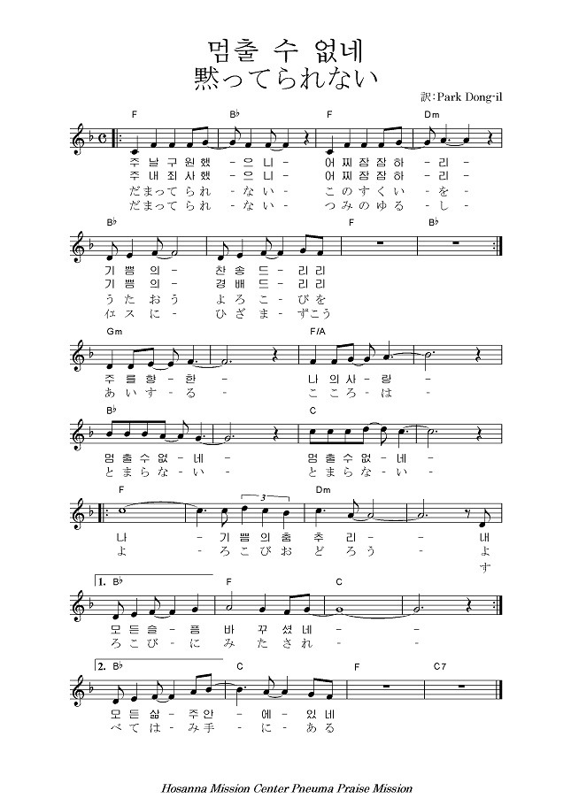 [ㅁ]멈출 수 없네 (주 날 구원 했으니) / 黙ったられない - F 작성자석성주|작성시간09.11.30|조회수4,902 목록 댓글 0 글자크기 작게가 글자크기 크게가 Damatterarenai.wma 일본어는 2절만 입니다. 첨부파일첨부된 파일이 2개 있습니다. jpg 파일 DamatteRarenai_F.jpg 다운로드 etc 파일 Damatterarenai.wma 다운로드 다음검색 현재 게시글 추가 기능 열기 북마크 공유하기 신고 센터로 신고 댓글 댓글 0 댓글쓰기 답글쓰기 댓글 리스트