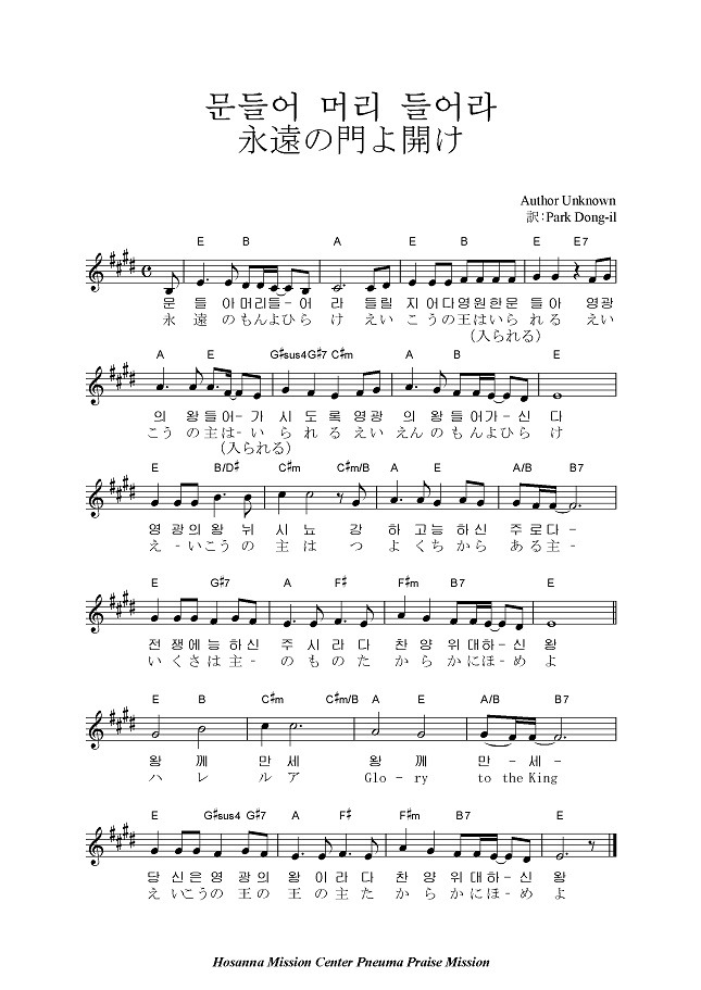 악보의 제목에 오타가 있습니다. 문들아 머리 들어라 입니다.
