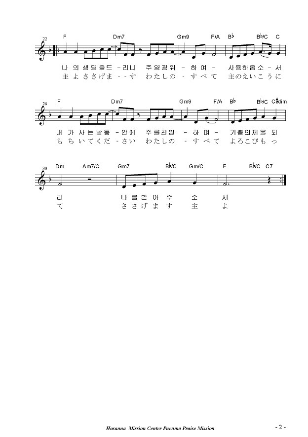 악보의 2번 째 장은, 후렴을 한 코드 올려서(분위기 업) 연주할 때 사용 합니다.