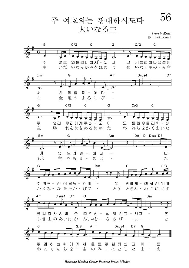 [ㅈ]주 여호와는 광대하시도다 / 大いなる主 - G 작성자석성주|작성시간12.10.24|조회수649 목록 댓글 0 글자크기 작게가 글자크기 크게가 OoinaruSyu.mp3음원은 코드가 다를 수 있습니다.협찬 - Hosanna Mission Center* 수정 및 무단 복제는 불법입니다. 하나님께 쓰여질 예배를 위한 도구로만 사용해 주세요. 첨부파일첨부된 파일이 2개 있습니다. jpg 파일 OoinaruSyu_G.jpg 다운로드 mp3 파일 OoinaruSyu.mp3 다운로드 다음검색 현재 게시글 추가 기능 열기 북마크 공유하기 신고 센터로 신고 댓글 댓글 0 댓글쓰기 답글쓰기 댓글 리스트