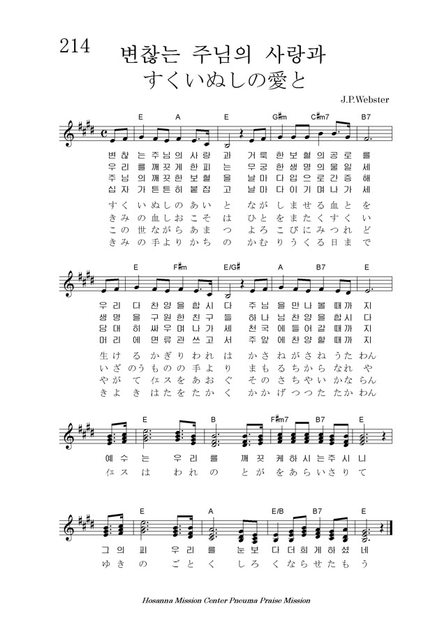 음원 순서는 전주 - 1절(한국어) - 2절(일본어) - 3절(한국어) - 4절(일본어) 입니다.협찬 - Hosanna Mission Center