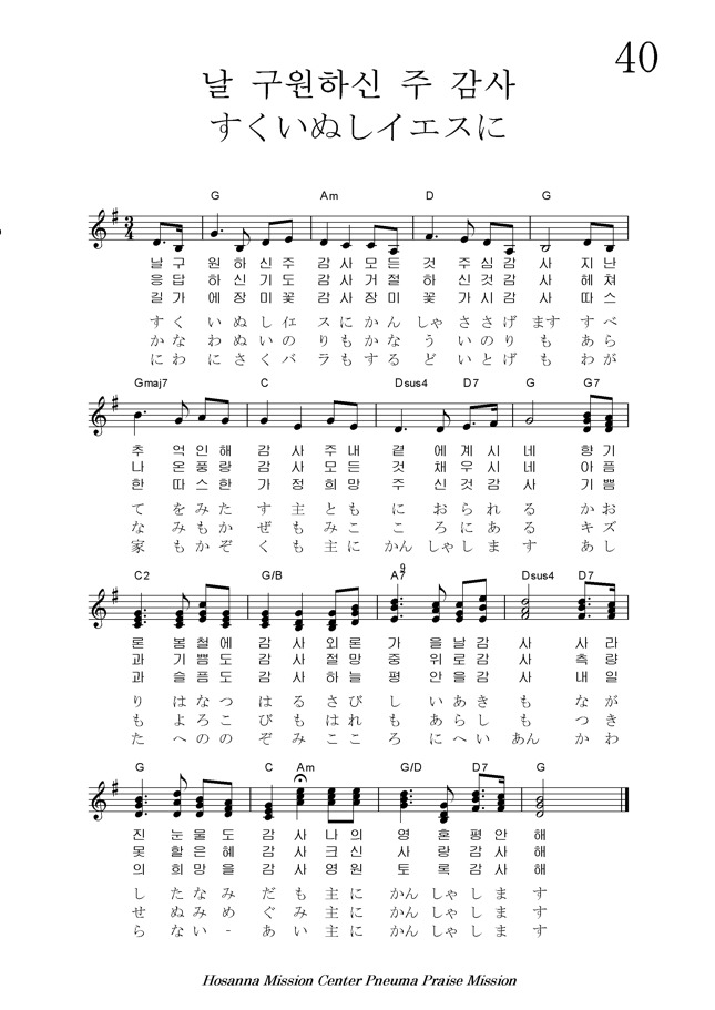 음원은 2절(일본어) - 3절(한국어) - 1절(일본어) - 1절(한국어) - 2절(일본어) 순서 입니다.협찬 - Hosanna Mission Center