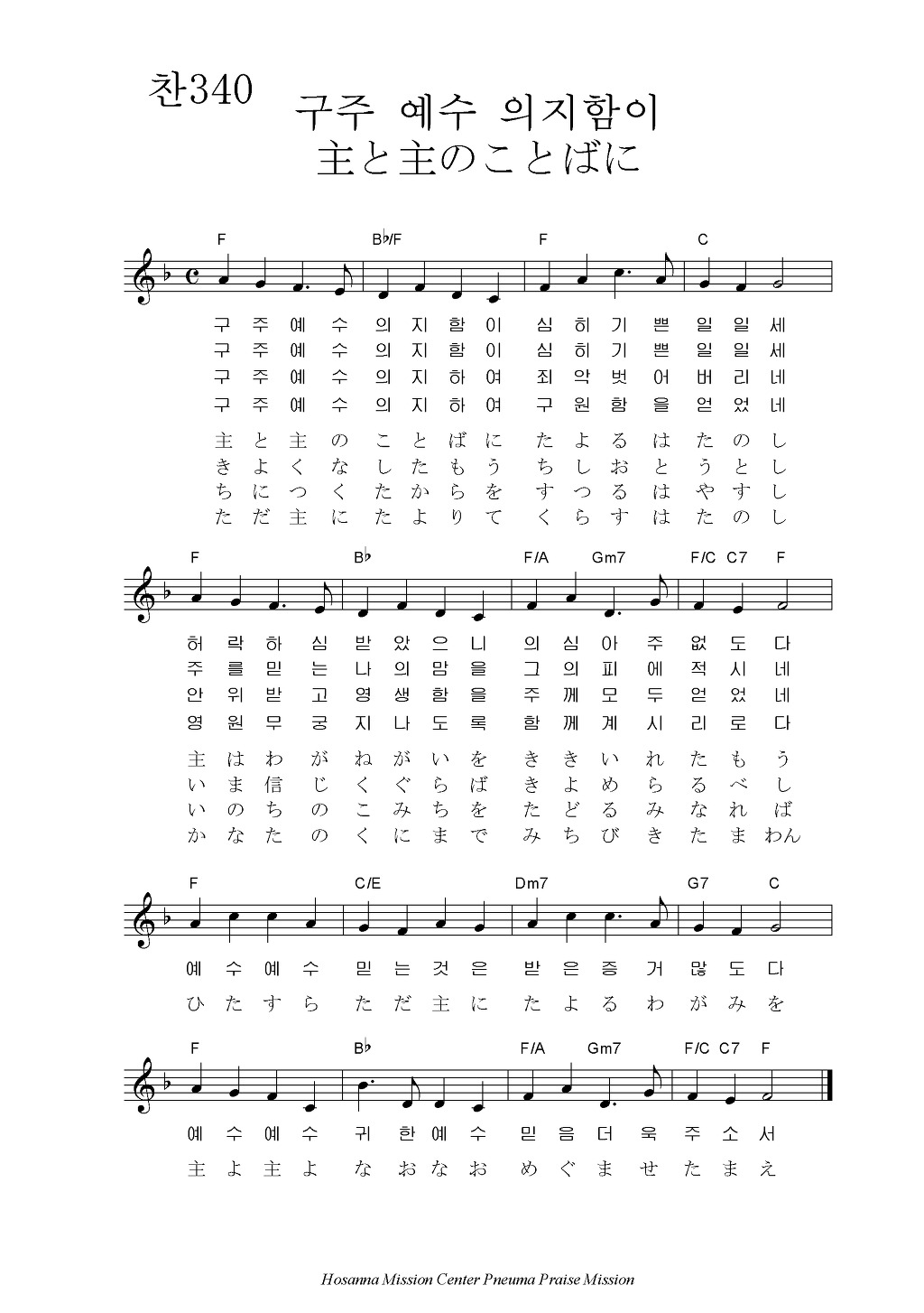 음원은 2절(일본어) - 3절(한국어) - 4절(일본어) - 1절(한국어) - 4절(일본어) - 후렴(일본어) - 후렴(한국어) - 후렴(일본어) - 후렴(한국어) - 후렴(일본어) 순서 입니다.협찬 - Hosanna Mission Center