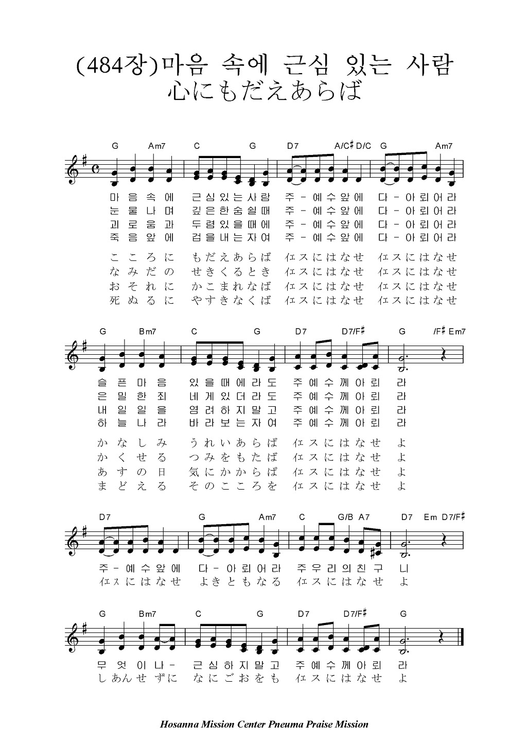 음원은 2절(일본어) - 3절(한국어) - 4절(일본어) - 4절(일본어) 순서 입니다.협찬 - Hosanna Mission Center
