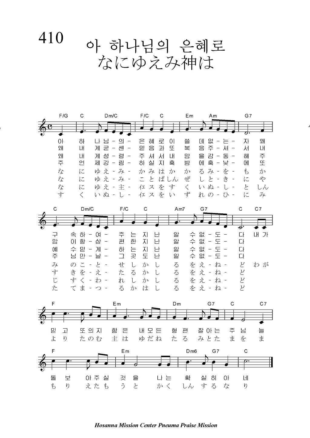 음원은 2절(일본어) - 3절(한국어) - 4절(일본어) - 후렴(일본어) 순서 입니다.협찬 - Hosanna Mission Center