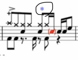 별표는 하이햇 하프 오픈이구여 괄호 빨간색은 작게 연주 하시면 됩니다