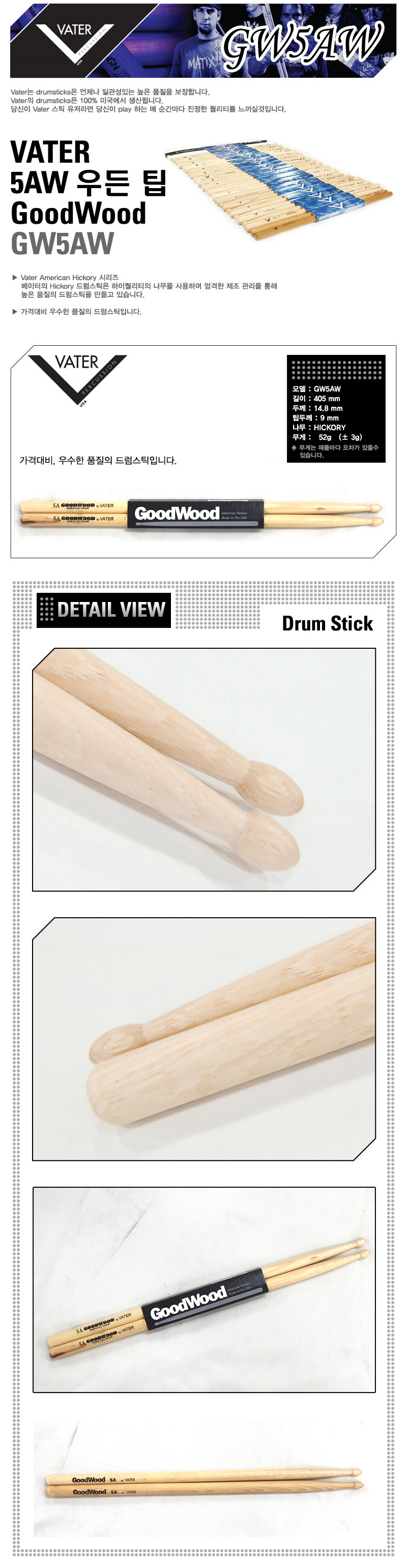 베이터 굿우드(Good Wood) 히코리 5A 입니다.