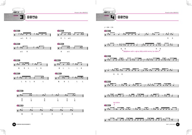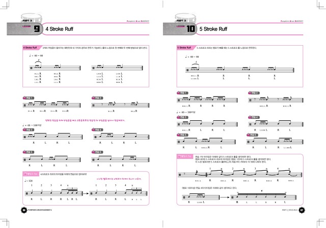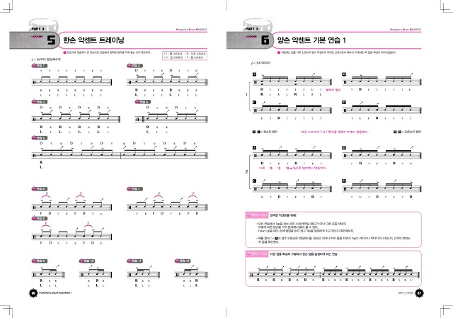 펌킨스 드럼 루디먼트 1권 PART3 - LESSON 3 - 다운, 탭, 업, 탭 스트로크