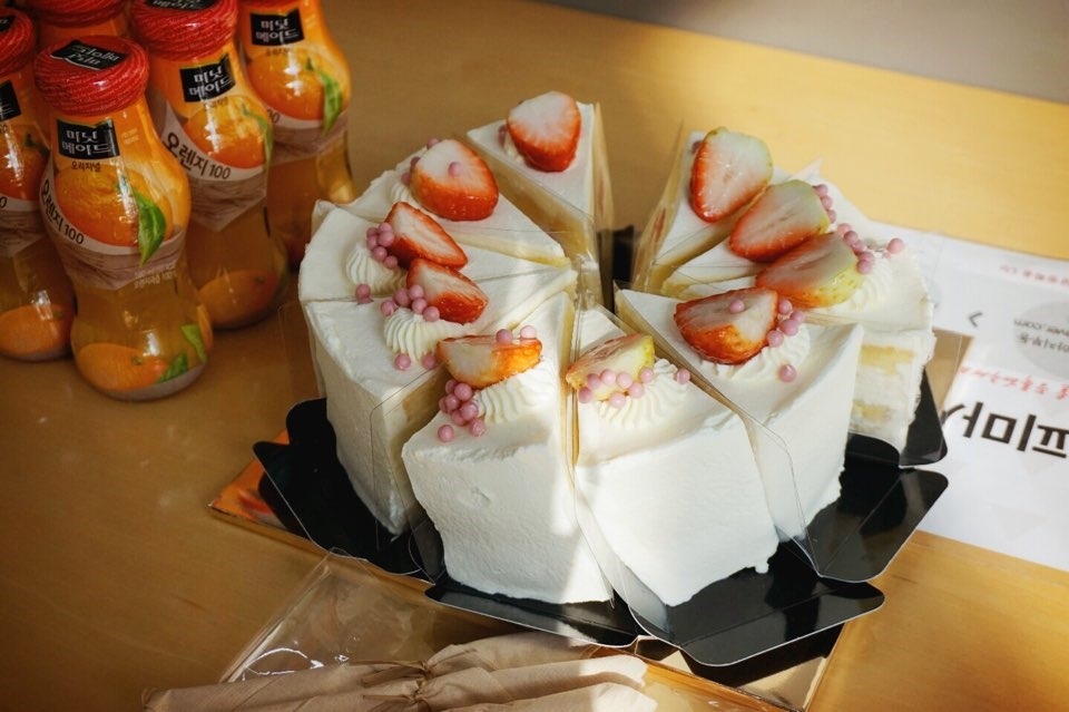 들어가자마자 딸기생크림케이크 포장을 했습니다.