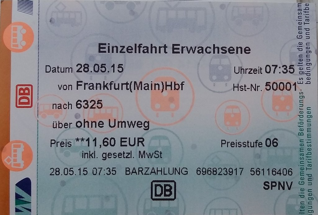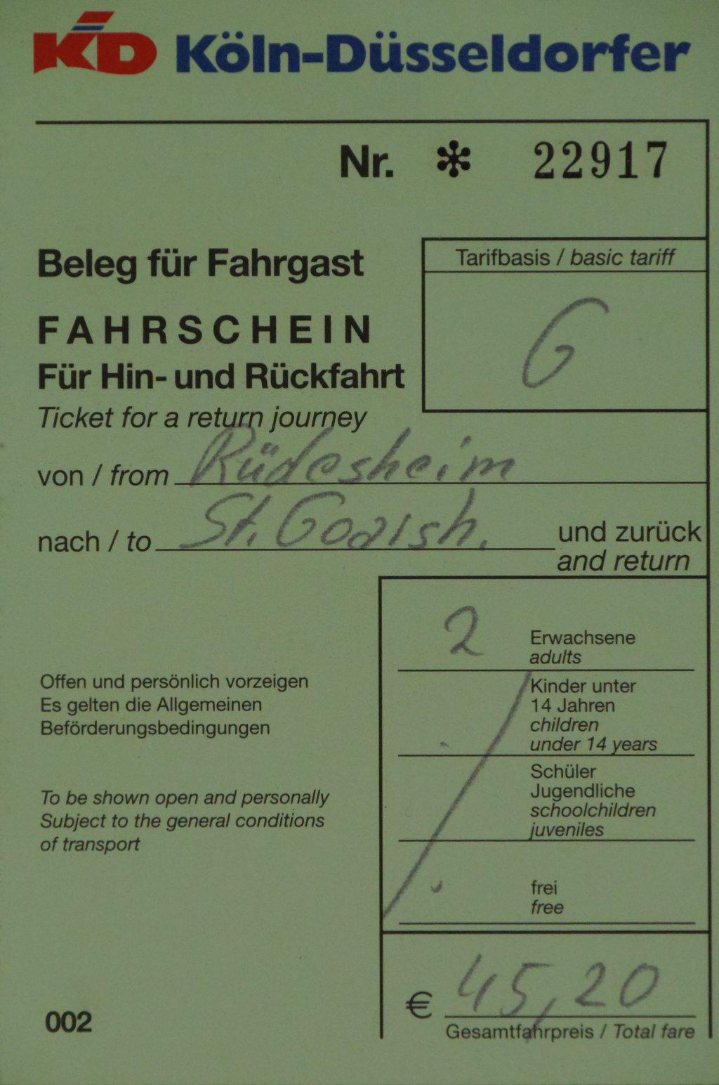 2015.5.28. 로렐라이를 가기 위해 7시 53분발 Rüdesheim행 열차를 타다(11.6유로) 1시간 정도 소요된다. 여기에서 배로 St. Goarshausen까지 가야한다.