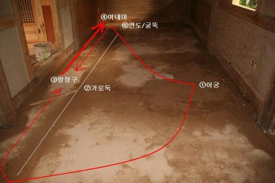두번째가 내가 지금 쓰고자 하는 주류판(住留板)설치로 하나의 배연구를 둘로해서 고래속의 불길을 방 전체에 펴는 것이고 그 다음에도 항정판(항定板) 음양분리판....등등
