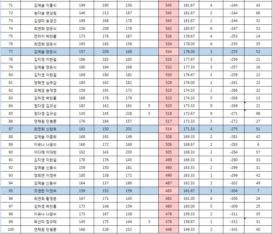 ★나사볼링장 소담점 쌍쌍게임 최종점수 (5/5 마감)★ 작성자양병준|작성시간21.05.05|조회수506 목록 댓글 4 글자크기 작게가 글자크기 크게가 점수 공개 : 21.05.05 (수요일)이의신청 : 21.05.05 ~ 5.07상품수령 : 5.08 (토요일) 상품수령지 : 소담점 카운터 다음검색 현재 게시글 추가 기능 열기 북마크 공유하기 신고 센터로 신고 댓글 댓글 4 댓글쓰기 답글쓰기 댓글 리스트 작성자이강식 | 작성시간 21.05.05 모두 고생하셨습니다. ^^ 답댓글 작성자완전좋아 | 작성시간 21.05.06 고생많으셨습니다^^ 작성자가비(심주갑) | 작성시간 21.05.05 고생 많으셨습니다 ^^ 답댓글 작성자완전좋아 | 작성시간 21.05.06 고생하셨습니다^^ 댓글 전체보기