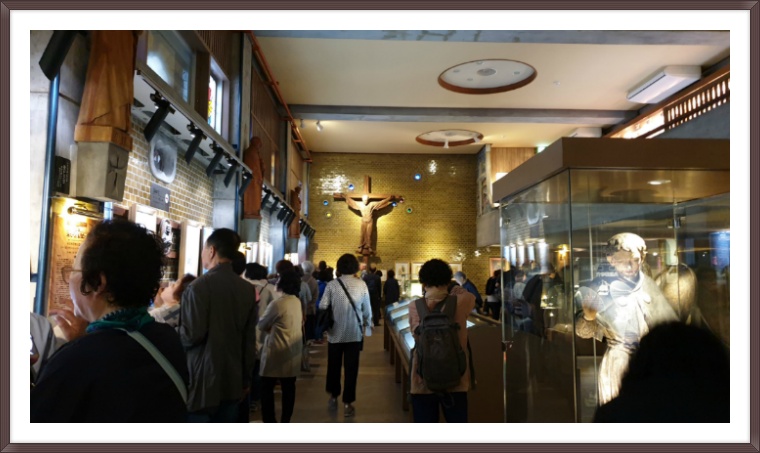1. 26성인 기념성당 (나카사키 소재) 일본의 성인 26인을 기념하는 성당이다. 그들은 나가사키시 니시자카 언덕에서 처형되었다. 이 성당은 26성인 기념관 옆에 있으며, 입구에'26성인기념성당 성필리피교회'라고 한글로 써있다. 2. 26성인 기념관 일본 26성인 기념관은 나가사키 니시자카 고원에 있는 순교지에 세워졌다. 일본의 기리시탄(キリシタン ), 포르투갈어:cristão (크리스탕)에서 유래, 일본 크리스트교도 역사의 시작이라고 볼 수 있다. 순교자조각 윗부분에 Laudte Dominum(찬양하라 주님을)이 새겨져 있다. 1597년 2월5일 당시의 집권자였던 도요토미히데요시의 천주교 금지령에 의해서 순교한 외국인(스페인 4명, 멕시코 1명, 포르투갈 1명) 6명과 20명의 일본 천주교 신자를 추모하기 위하여 1962년에 건립되었다. 26성인 조각상 머리 위로 성인 이름이 새겨져 있다. 26성인은 이 언덕에서 십자가형으로 처형되었다. 이들은 니시자카 언덕이 예수님이 십자가에 못 박혀 죽은 골고다 언덕과 닮았다고 하여 이 언덕을 사형장으로 삼아달라고 청했다고 한다. 그 후 일본 기독교 최초의 순교지인 이곳에서 수많은 사람들이 순교했다. 시성 된 100주년을 맞이하여 1962년 6월 10일 기념비와 기념관이 완공되었다. 기념비는 너비 17m, 높이 5.88m이며, 26성인의 실제 크기로 만들어졌다. 조각상을 살펴보면 유난히 키가 작은 조각상이 나오는데 순교한 12~14세 어린이 3명도 포함되어 있다. 26성인 중에는 임진왜란 때 포로로 일본에 잡혀가 그곳에서 영세 입교하고 성프란치스꼬 삼회에 입회하여 신앙을 쌓다가 순교한 성 바오로 이바라키, 동생 성 레오 카라스마루, 아들 12세의 소년 루도비코가 포함되어 있다. 그 어린 소년이 말했답니다. "내가 매달려 죽을 십자가는 어느 것입니까?" 가장 충격적인 성물이었습니다. 저 기둥속에 이런 성상을 숨겼다는 것을 누가 상상이나 하였을까요? 피에타입니다. 3. 오우라 천주당(나카사키 소재) 정식 명칭은 일본 26순교자 천주당(日本二十六聖殉教者天主堂)인 오우라 천주당은 일본에서 가장 오래된 목조 성당이며, 일본의 국보로 지정된 건물 중 유일한 서양식 건물이기도 하다. 1865년 프랑스인 신부에 의해 창건된 직후 1614년 천주교 금지령이 내려진 이후 대대로 숨어서 신앙을 지켜오던 나가사키의 천주교인들이 조심스레 모습을 드러냈다. 1865년 3월 17일 처음으로 자신이 천주교인임을 밝힌 이사벨 유리 이후 수만 명의 천주교인들을 보고 당시의 교황 비오 9세가 ‘동양의 기적’이라며 큰 감동을 했으며, 이날을 임의의 기념일로 지정했다. |