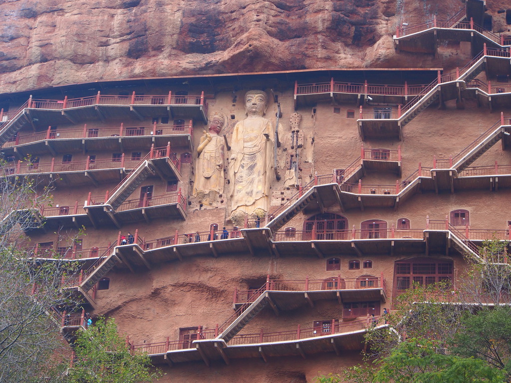 • Maijishan Grottoes[~ grátous] • 麦積山石窟[ばいせきざんせっくつ] • 麦积山石窟[mài jī shān shí kū] • 맥적산석굴[mæg jəg san səg gur]